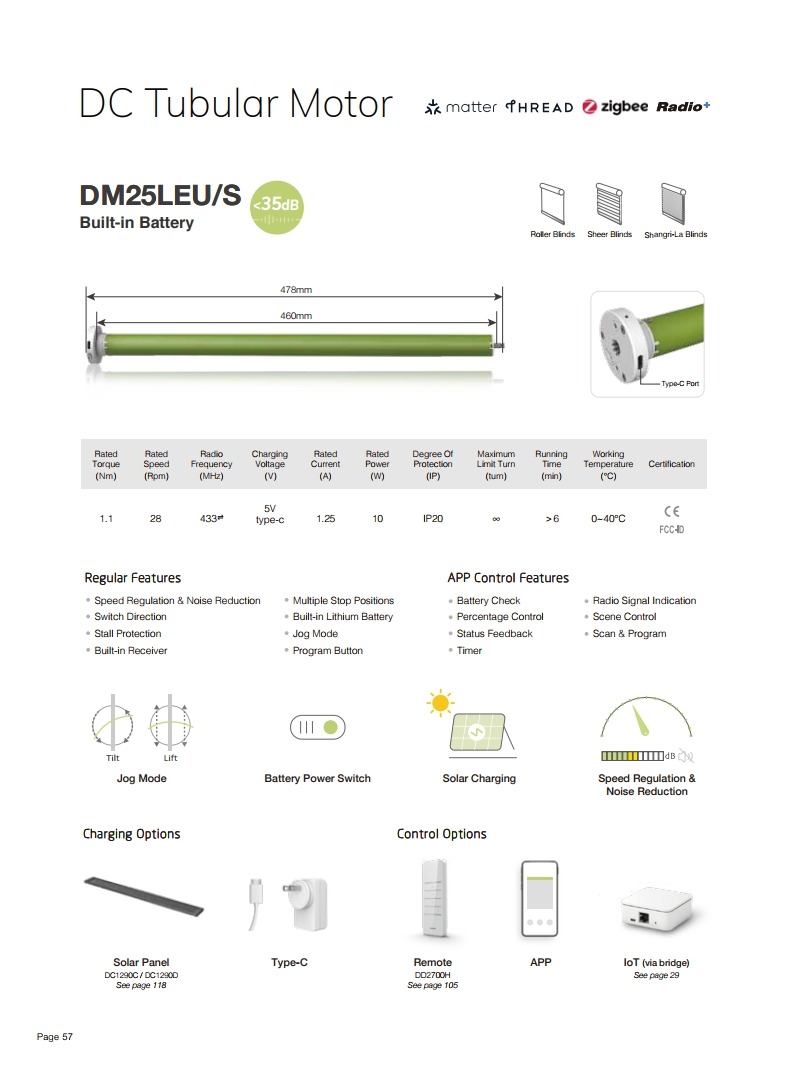 HA92 Smart DC Tubular Motor β Model DM25LEU/S (Built-in Battery, Type-C)
